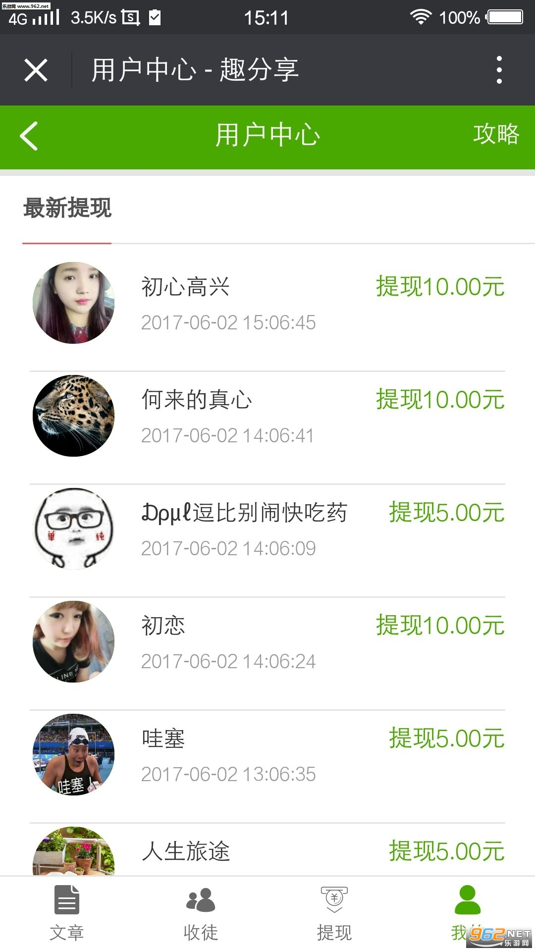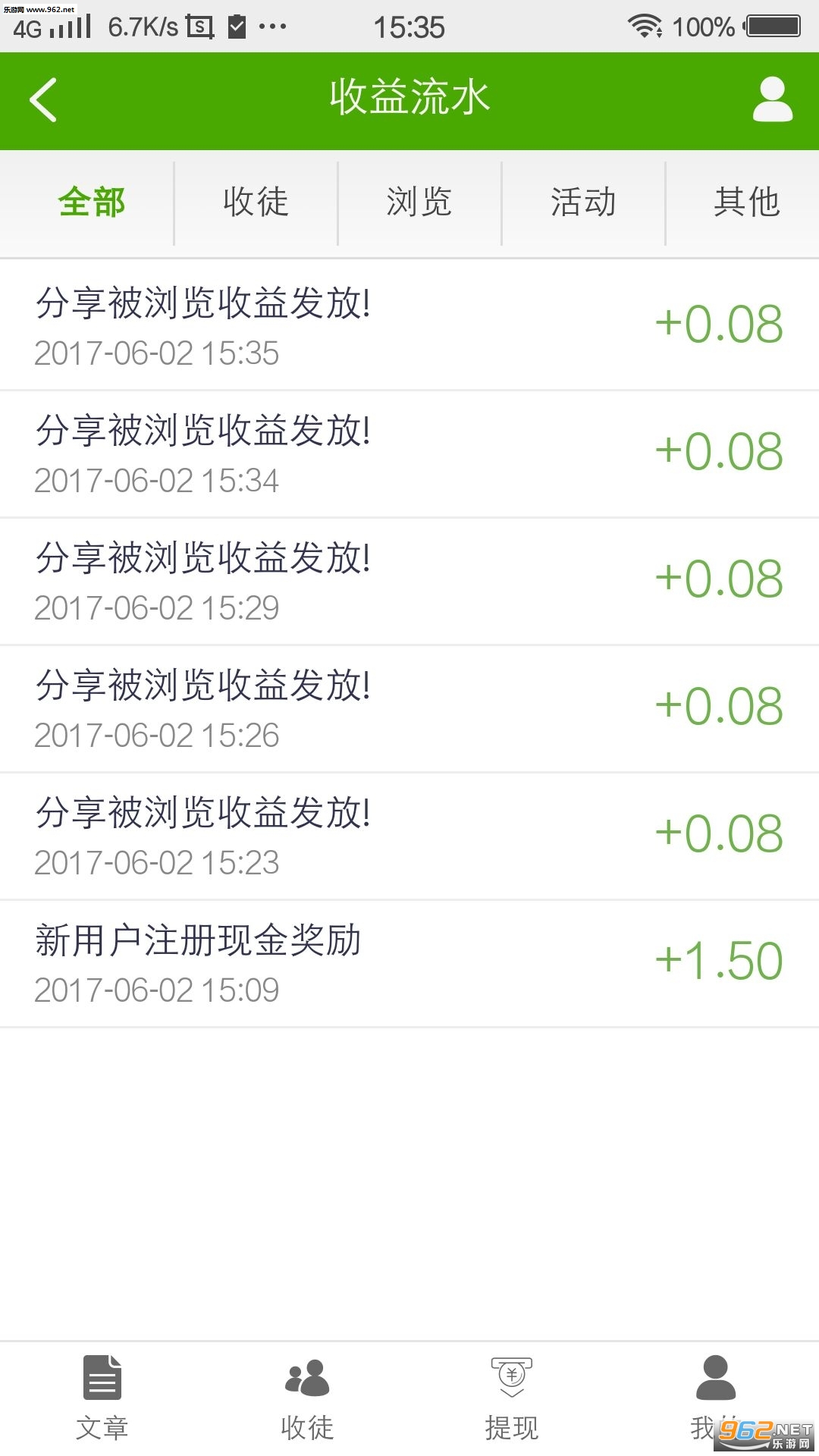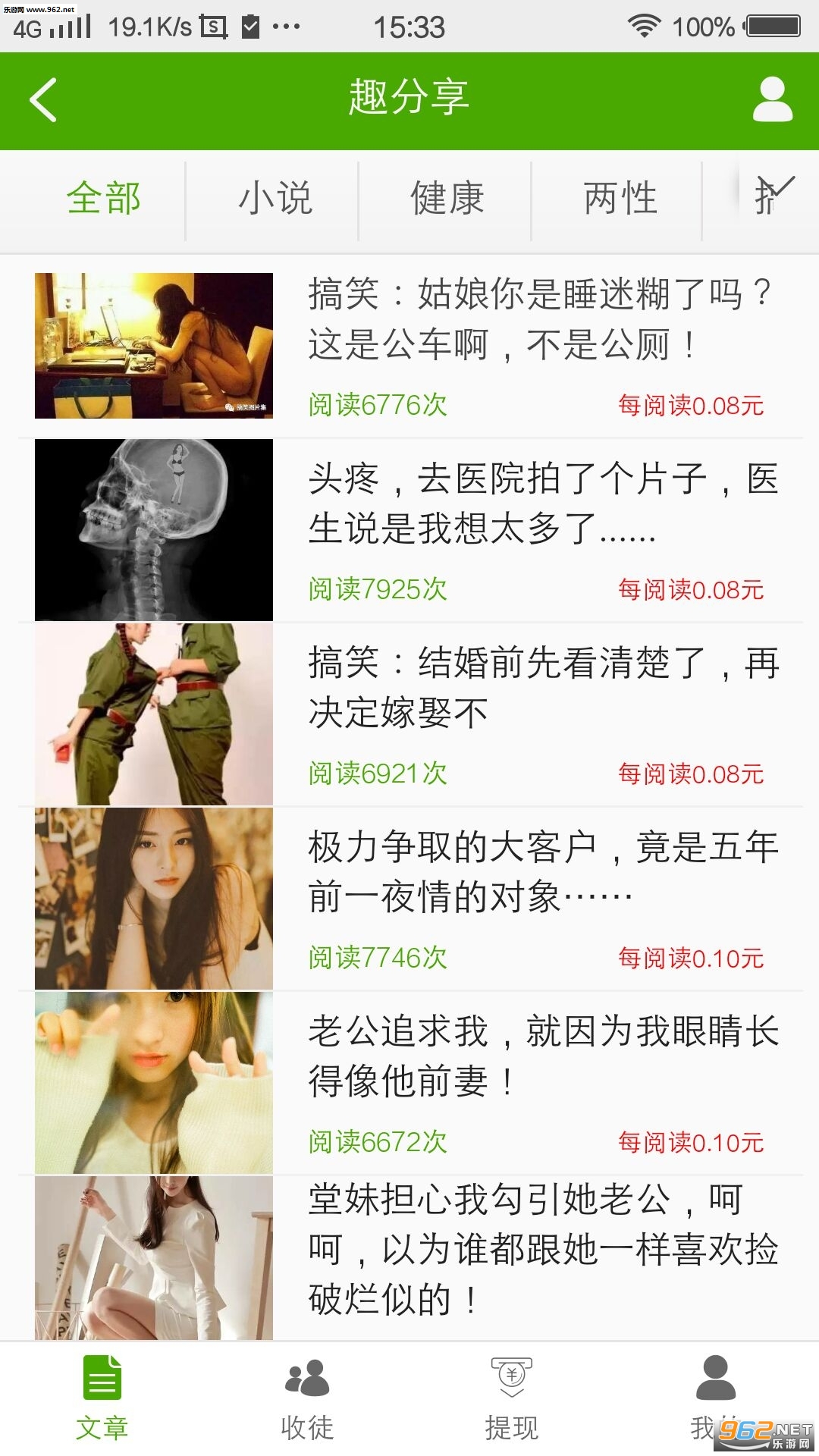 趣分享app一款赚钱的手机app,注册就可以领礼包。主要是通过分享文章来赚钱的,分享的越多赚的就越多,还有收徒功能,发展更多的小伙伴还有奖金。每天几分钟分享文章到您的,朋友圈,好友浏览就有奖励,即可获得丰厚奖励。