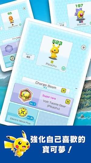 2、了解不同神奇宝贝的技能和属性,相互匹配配合,共同战斗,不断提升等级;