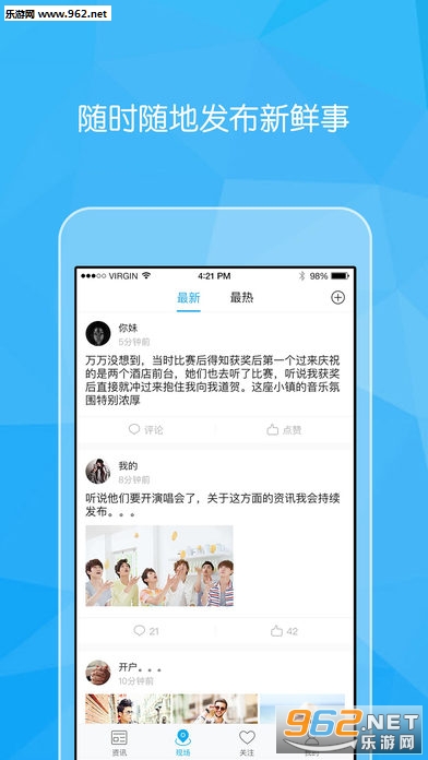 新闻报道:7×24小时不间断更新,为你带来新闻现场一手资讯;重大、突发新闻推送,30秒到你手中。