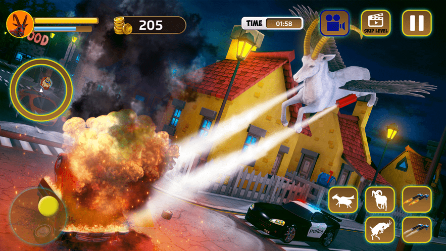 我的山羊模拟器城市救援Scary Super Goat Animal life,这里你需要和野生动物战斗,打败它们,并且操控武器救援人类,帮助人类度过难关,模拟真实的3D羊,当然,在这里很神奇的是,山羊是可以直立行走的。没有什么是你做不到的。