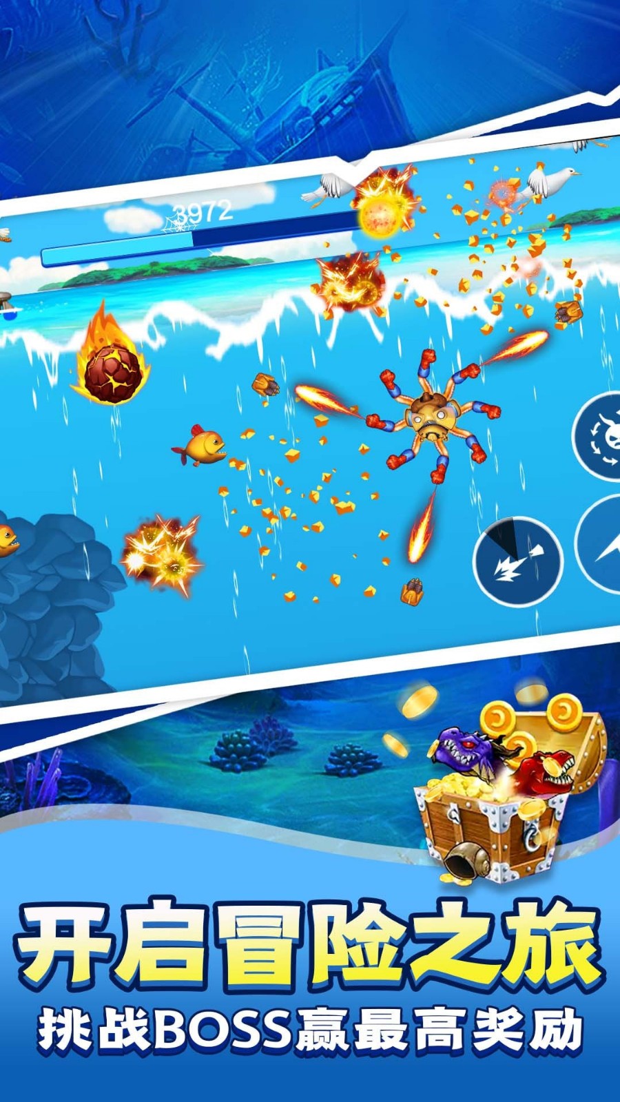 你将在这款游戏中探索优美的太平洋岛屿、冰冷的北极海域还有现在的南海,一个充满新鲜无知猎物的热闹海域!