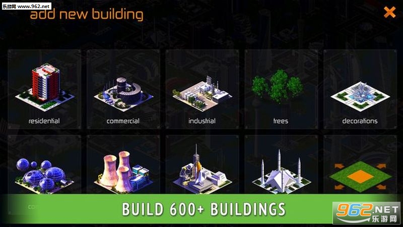 你你需要构建一个繁荣的城市,你需要构建一些摩天大楼和一些居民住宅来吸引更多的人到这里发展,在这里工作,你需要构建一些商业区和一些工业区,为人们提供一些工作岗位。当然,你更需要的是发展一个城市的文明,医院,图书馆,等等这些建筑是必不可少的,还有一些休闲社区,公园,和一些绿化把这个城市变得更加美好。