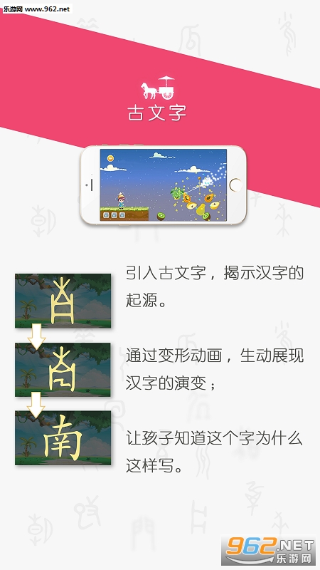 2)专业:引入了甲骨文、篆书等古文字(目前小学一年级必考甲骨文),并且将古代汉字到今天汉字的演变过程,通过动画的方式展现出来。从而帮助孩子们更好地理解,这个汉字为什么是现在这样的形状、这样的含义。