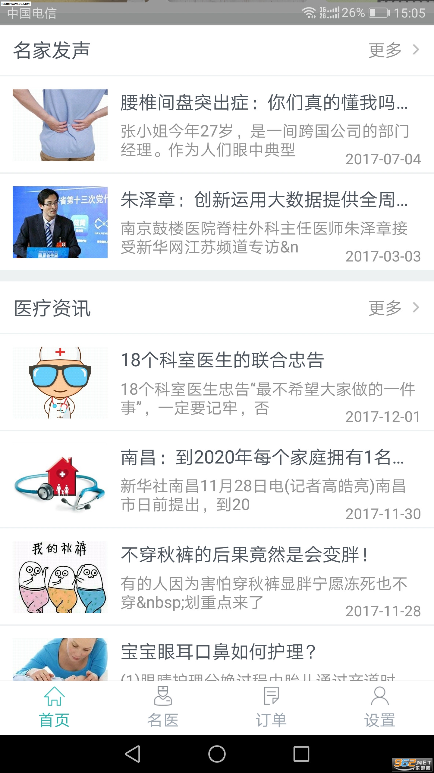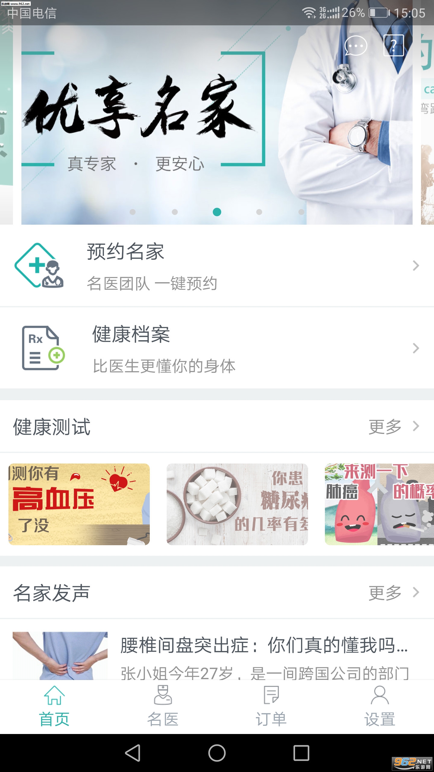 e寻名家app是一款健康医疗软件,是患者和家属提供的移动客户端。在e寻名家app中你可在线咨询治疗结果、一键查看历史病历和在线咨询一线名医医疗信息。e寻名家,由专业医师参与设计,目前针对骨科疑难疾病患者,提供一线名医在线问诊咨询,线下对接治疗,云病历,康复跟踪等功能的医疗服务平台。