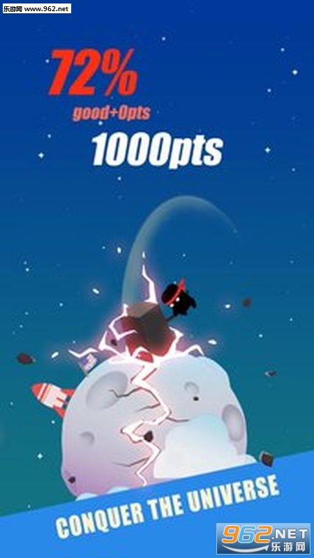 我们需要在正确的时间让主角把星球砸碎,这是时间就决定着主角的力量最大值,但是如果时间不对,星球是砸不碎的,游戏也就结束,当你完美一击之后得到的分数也会加倍,这是一个非常酷炫的游戏,让你领略到星球的美丽与游戏的刺激与疯狂。