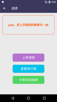 智商测试是一款测试智商的应用,测试题为国际标准智商测试试题,限时测试。通过60道标准测试题,测试您的智商,测试完成自动根据年龄计算相应智商。并支持上传成绩,查看用户排名。想知道你的智商有多高?快来测试一下吧!