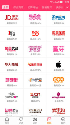 5、商城返利:京东等数百家知名商城购物拿返利。