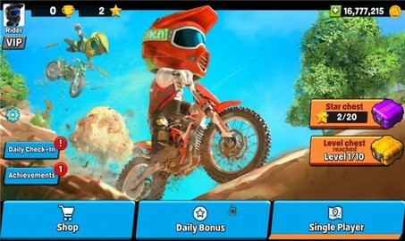 1、更换不同的赛道和摩托车,玩家可以体验不同的场景和挑战。