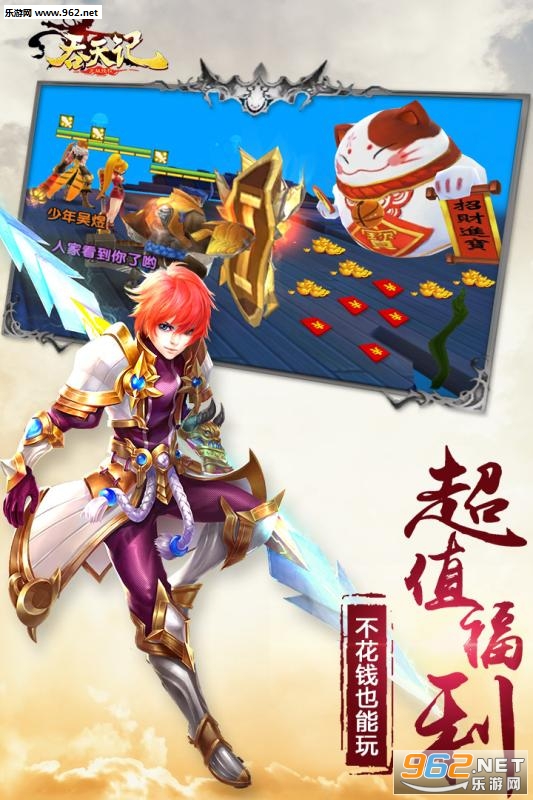 战斗采用传统九宫格回合战斗,伙伴和兽灵遵行传统的回合制,主角英雄采用即时怒气技。整体战斗既有回合制的休闲策略,也有即时制的瞬息万变。主角的技能设定非常人性自由。单杀、群杀、控制等各种技能,效果非常华丽,更有组合全屏羁绊技能,让战斗成为一场视觉盛宴,让你爽到极致。《吞天记》整体战斗变化风云莫测,我们拒绝脑残的自动战斗模式。纵观全局,搭配英雄,撑握时机,才是《吞天记》的战斗精髓。