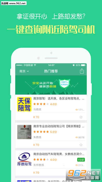 《驾驶员陪驾app》中国领先的汽车陪练品牌。新手上路不用愁!