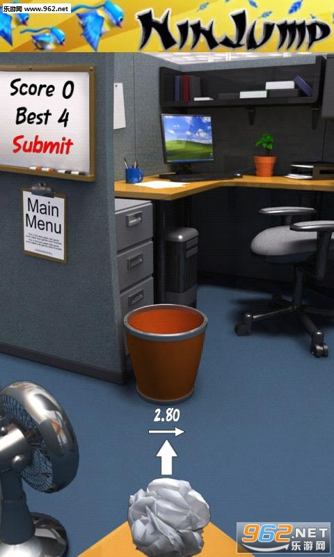 游戏是以办公室为游戏场景,玩家所要做的就是要把废纸团丢进垃圾桶,而在你的边上会有一个风扇,玩家必须注意到风扇的风向及风速速, 估算出最佳的抛出角度才可以。