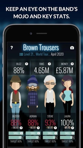 《超级明星乐队经理 Superstar Band Manager》是Underground Creative 开发的一款模拟经营类手游。 玩家要扮演一支乐队的经理,你要亲手打造一支超级明星乐队,打造出每个成员的独有特色,吸引粉丝,增加收入,成为一名合格的经纪人。
