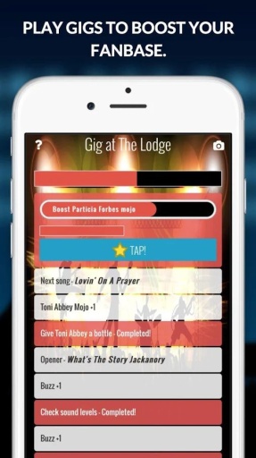 游戏趣味性很强,20+m的内容不输开罗~ 乐队可以选风格,先是练习提升技巧,同时要创作曲子出EP,上台演出揽粉丝,这样才可以赚钱~从一开始只能在车库创作,到后来技术粉丝表演到一定水平就是可以签约公司啦~之后就是创作出专辑,开演唱会,卖周边,升级工作室和乐器,世界巡演~ 总之,这个游戏绝对五星好评~