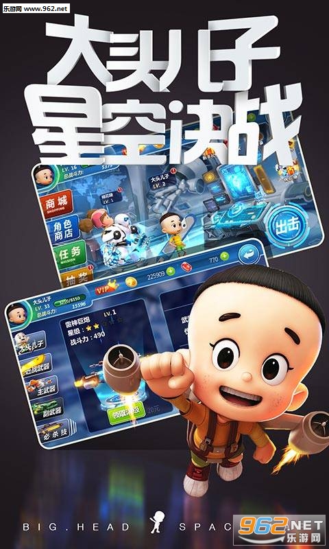 《大头儿子太空大决战安卓版》是一款以经典的动画片《大头儿和小头爸爸》中的角色为原型制作的横版闯关游戏手游,带你回到童年的快乐时光!大头儿子化身多种趣味装扮,解锁百变造型,还有专属宠物一路相伴,和大头儿子一起冒险闯关吧!