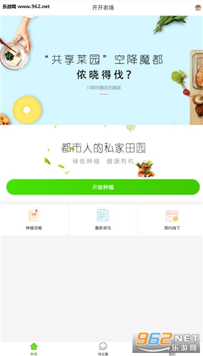 A:下载开开农场客户端,注册、登录后,点击【“开始种植”】→【“选择菜品”】(记得参考蔬果种植攻略)→【“选择菜地”】→【“立即种植”】→【“确认订单”】→【“立即支付”】。支付完成,即可开始共享。
