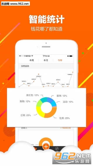 4)智能统计:线图饼图展现,清晰了解每周、每月收支构成。