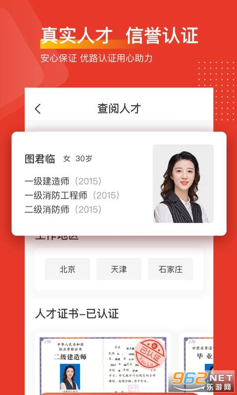 2、平台上面的所有人才都是经过了审核认证的,拥有相关的资格证书和培训经历。