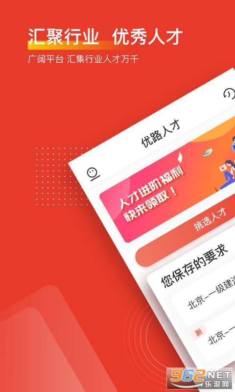 《优路人才》是一款人才招聘凭条,能够帮助企业轻松发现优质的人才信息,解决各种各样的招聘问题,企业可以根据对应的要求来搜索合适的人才,同时人才的信息也是百分百真实信息,是企业招聘的好帮手,高效便捷