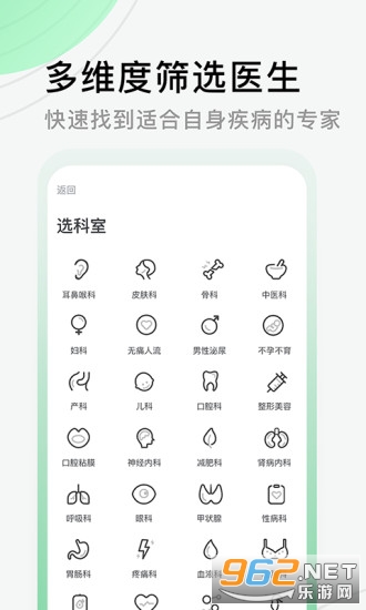 2、智能导诊:用户症状自检,方便患者速速就医;
