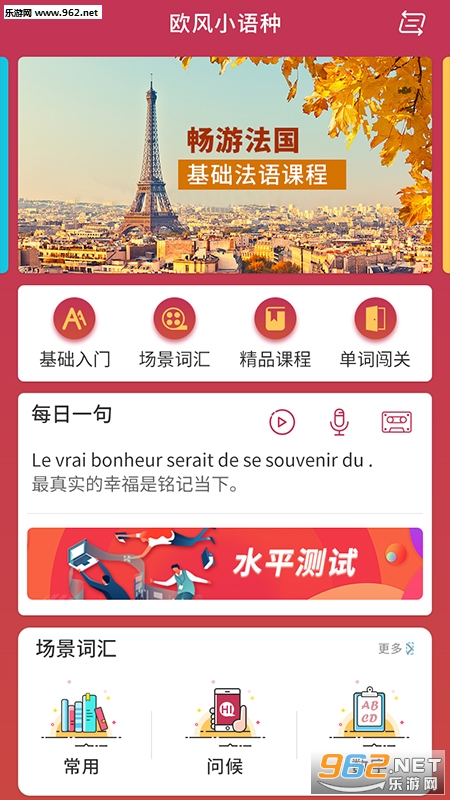 《欧风小语种官方版》是一款小语种在线培训软件,专为用户提供德语、西班牙、法语、意大利等小语种的学习培训,平台包括基础入门,场景词汇,精品课程和单词闯关四大部分,能够让你快速有效的学习你感兴趣的小语种,快来下载吧!