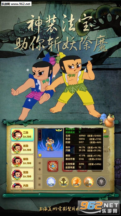 由上海美术电影制片厂正版授权,以86年《葫芦兄弟》剪纸动画片为背景的手游大作。深度还原动漫情节,开创横版战斗手游全新玩法,挥别传统AI组队、电脑控制,策略搭配,默契组合,与游戏好友实时互动,共闯妖巢!当年的你,只能看着电视屏幕暗自捉急,如今,你却可以带着团结勇敢的葫芦娃们,拼荆斩棘,怒破妖洞大门!此番能否救出热心善良的爷爷与凄凉悲苦的小蝴蝶,还看今朝掌中葫芦娃!