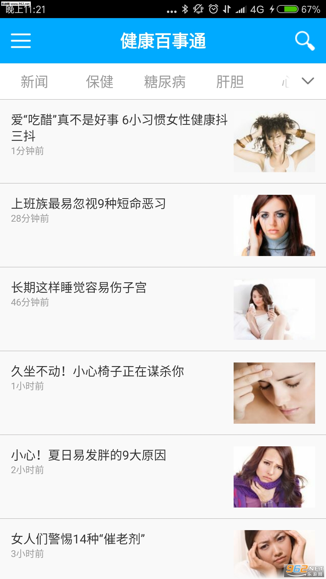 为用户提供实时,丰富的健康资讯内容,囊括新闻,保健,糖尿病,肝胆,瘦身,减肥,美容,孕婴,运动,心理,用药等数十个健康版块,丰富的订阅内容满足您 的一切需求!每天数百条的*资讯更新*的健康新闻,人文角度贴心关注大众的健康生活,时刻守护你的身体!
