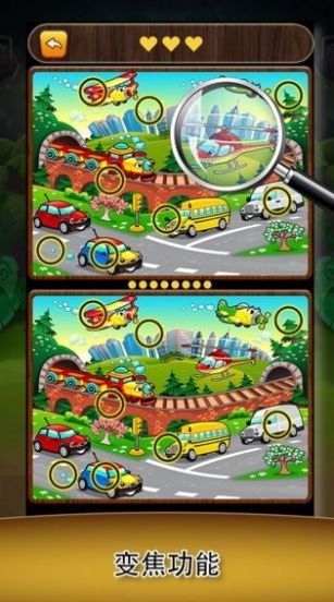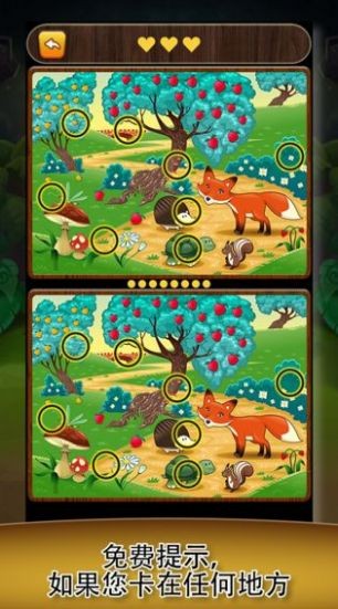1、玩家需要在两张几乎一模一样的图片中,找出其中的5处不同之处;
