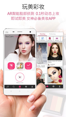 一系列化妆工具,轻松点缀双眸、肌肤、双唇及发色,一键随性玩妆!在线实时试遍卡姿兰、玛莉黛佳、植村秀、雅诗兰黛、美宝莲等品牌眼影口红新潮尖货