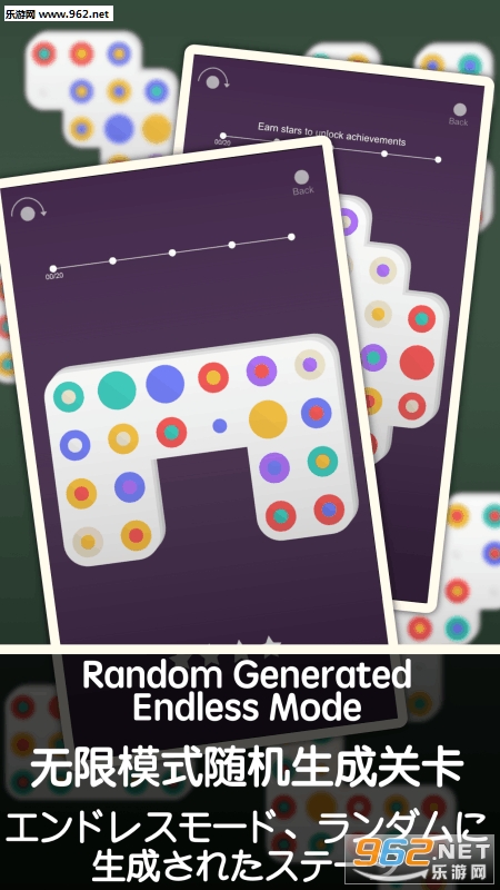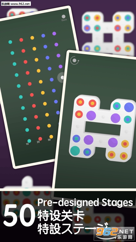 游戏的界面非常简洁,扁平化的图形和鲜艳的色彩都给人很高的好感度。不同的关卡内是不同形状的图形,玩家需要把图形内的圆圈和圆点同色配对起来。圆点是固定不动的,圆圈可以上下左右在空格之间移动,但圈和圈位置不能互换。一开始只有两种颜色,点的数量也很少,但随着关卡的深入,每关需要配对的圆点颜色和数量都会增多,很容易就会陷入死循环,怎么也找不到正确方法的情况。