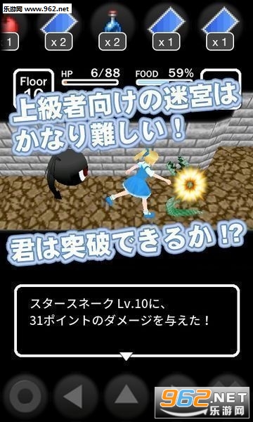 1、总之操纵爱丽丝在迷宫里探索,找到同往下一层的路即可,利用迷宫里捡来的装备和道具,向最深处前进吧;