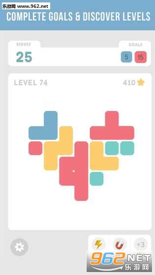 点击并收集相同颜色的方块,这些方块必须是三个及三个以上的相连方块