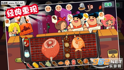今年的烧烤生意特别好,街上好多烧烤摊,香喷喷的五花肉、烤面筋、烤鸡肉、烤蘑菇……你也来摆个烧烤摊试试吧!只要掌握好时间和火候,就可以满足客人的要求,赚到好多好多的钱!
