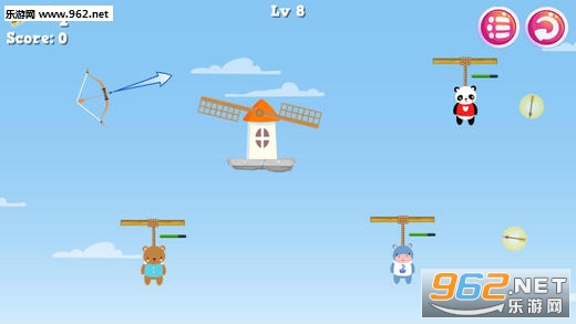用你的弓箭瞄准吊着动物们的绳子,并准确无误的射断,奄奄一息的动物们将因此获救。注意:你必须尽快将所有的动物解救出来,如果没有及时救出,它们将会失去它们的生命;射击的时候也千万要小心,射中动物们也将让它们更快的失去生命。
