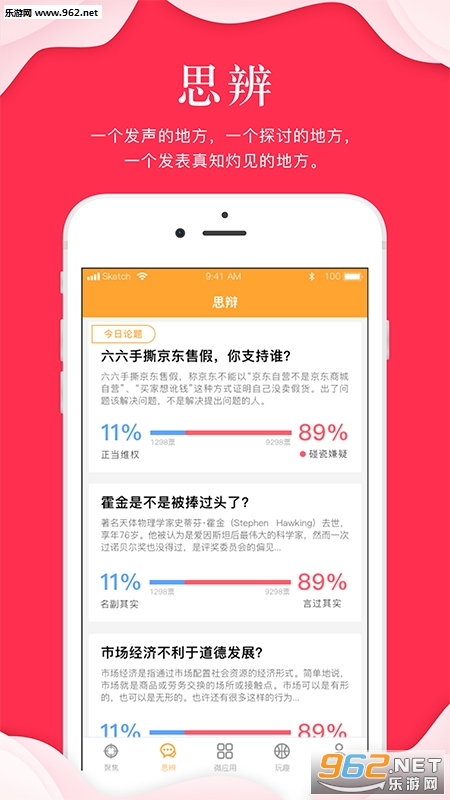 支持投票思辩观点、点赞、抢论主;