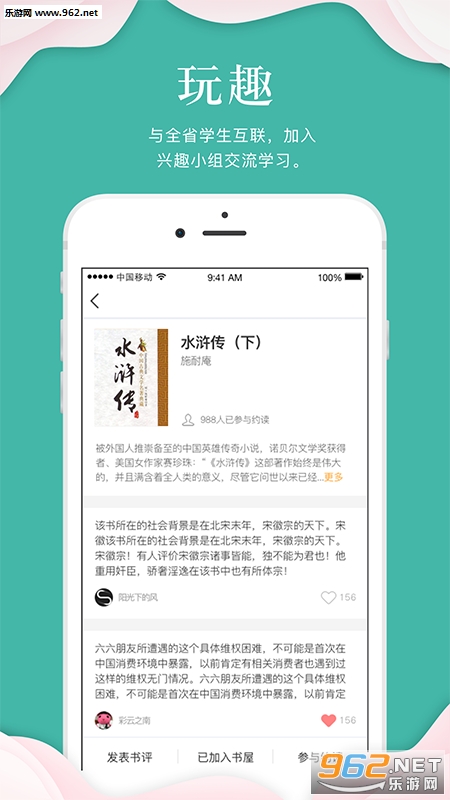 支持添加书籍倒书屋、发表书评、点赞书评、参与约读、提问问题、参与讨论等等功能。