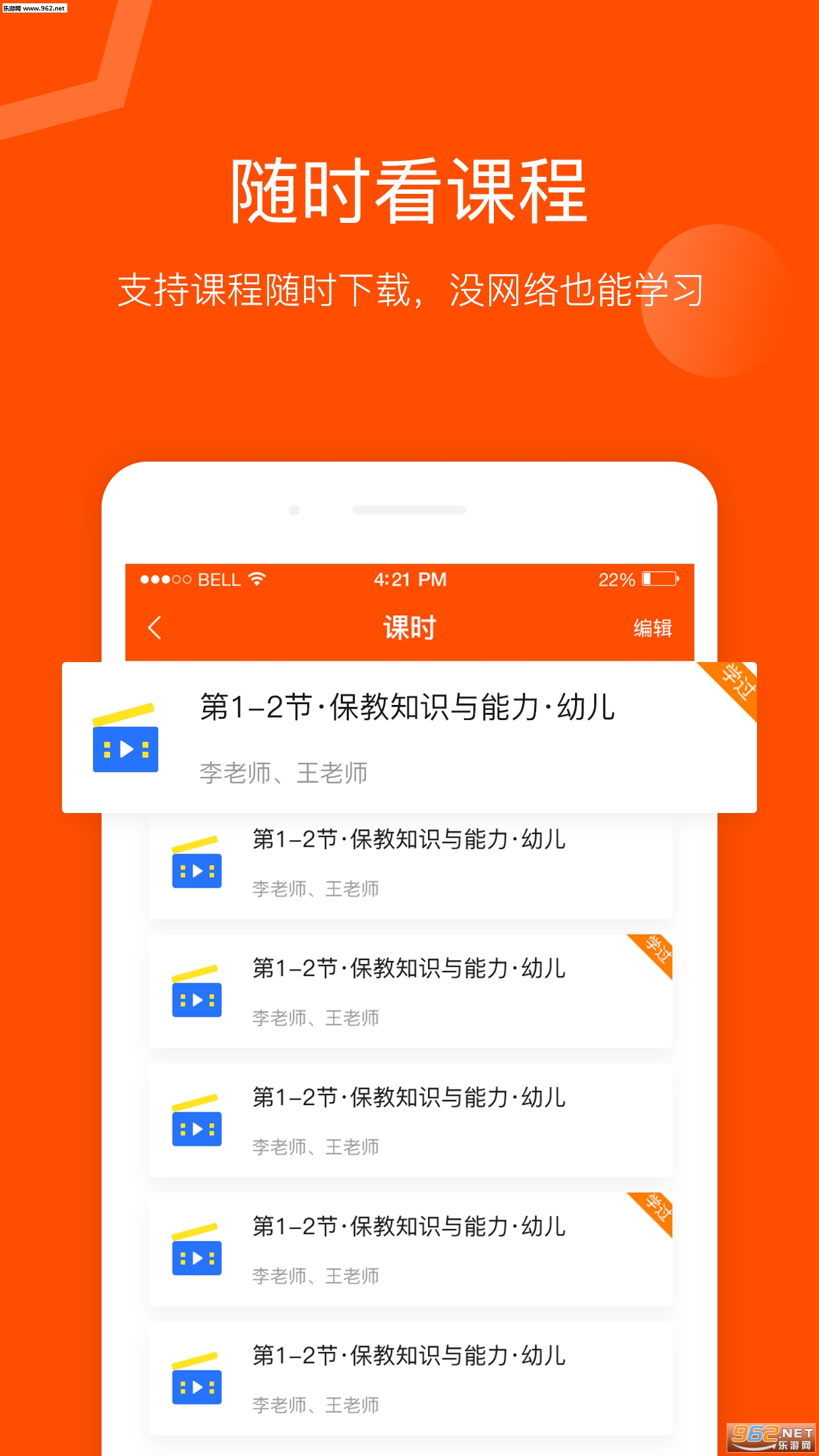 4.随时看课程,支持课程随时下载,没网络也能学习