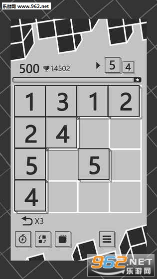 &9654; 新放置的数字八个方向(上、下、左、右、左上、左下、右上、右下)有相同数字时将合并为新的数字