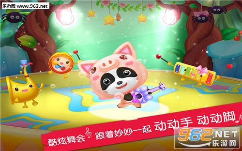 【酷炫舞会】:哇!妙妙在开演唱会哦~多个酷炫的舞台背景,随意切换~还有好多可爱的乐器小人在给妙妙伴舞呢~