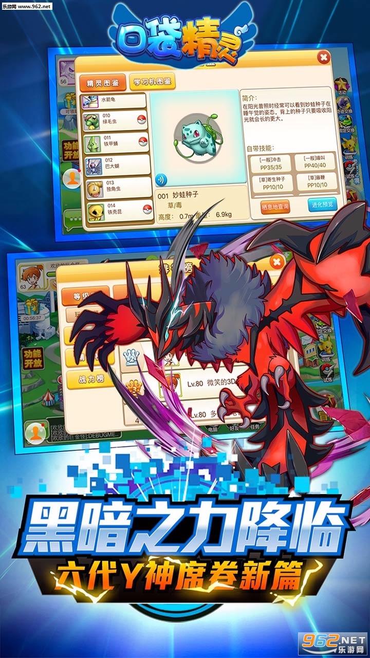 2026年度最佳日系正统RPG卡牌手游,风暴来袭!既然你诚心诚意的发问了,那么我们就大发慈悲的告诉你,为了防止世界被破坏,为了守护世界的和平!《口袋精灵》全系Q版呆萌宠物震撼登场!超酷炫宠物技能,原版配音直奔痛点,梦幻般的视觉盛宴,完美还原擂台大赛,带上你可爱的宠物踏上通往宠物训练大师的魔法远征之旅吧!