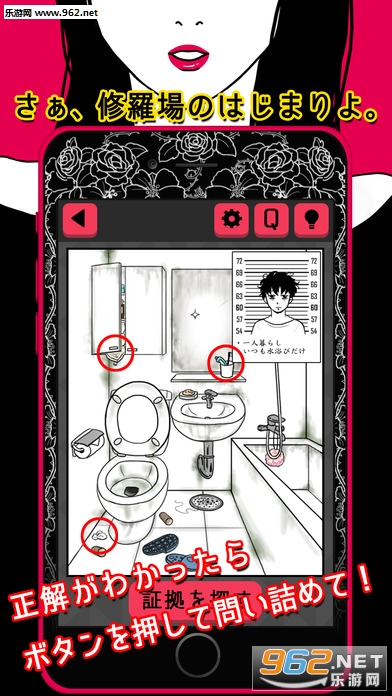 仔细阅读开头说明,然后在房间内寻找此关需要的证据每大关都有4个证据,只要收集齐了,就能让他永远滚出你的视线了当然要是失败,就会看到他得意洋洋的蠢样——当然打人是不文明的,打死了还要蹲班房,冷静思考再此寻找即可。