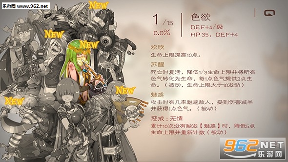 色欲:貌美绝伦的女人,就连魔物都挡不住她的一眼的魅力,即便是受到了重伤她都有办法死里逃生。这样的女人却不服输,如果魅惑失败,会使自己的心情非常低落。