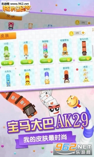 游戏之外还有排行榜和各种皮肤,界面布局整洁清新,简约不简单。贪吃蛇造型憨态可掬,颜色绚丽。