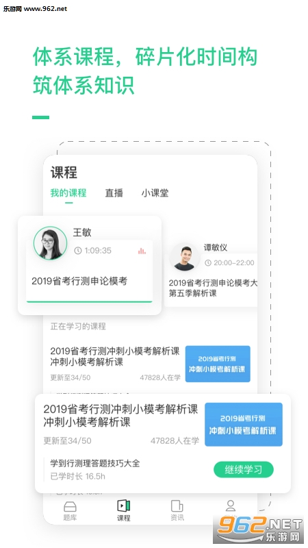 挺好用的一款在线学习类软件,在这里你可以学习各种专业的知识,在线咨询老师答疑,在线练习答题,从各个方面来提升自己,需要的话就来下载吧!