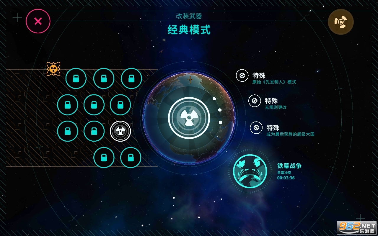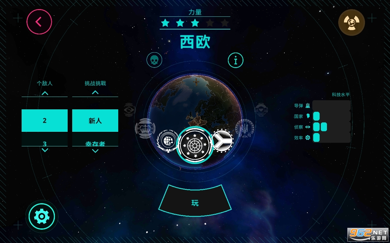 先发制人(First Strike)在游戏中,玩家首先要选择一个所属国家,你可以选择朝鲜这样神秘又奇葩的集权国家,也可选择像美利坚一样的超级“民主”大国。接下来,你的一举一动、每一个决定都与国家的前途和命运息息相关,是以和平外交的方式,保持世界和平;还是施加压力,以武力来接管世界,一切你说了算!