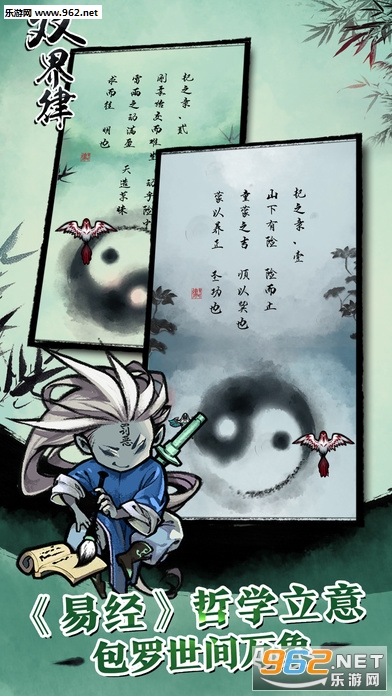 《双界律》以《易经》太极八卦作为世界关构架,同时在每关开篇加入哲学意味的易经原文。让玩家在游戏中感受广大精微,包罗万象的国学经典。除了游戏上的融合,游戏还结合周易卜卦设置了每日算卦活动,不同卦象对应不同的加成效果。