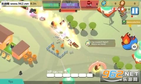 3.不断避开警车的追踪并破坏一路上各种物品可以获取观众们的掌声。