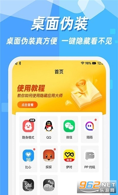 一款十分实用而且专业的手机应用隐藏工具,使用方法简单,安卓隐藏应用软件支持桌面应用伪装,让手机应用看不出来,除此之外,还可以将不同的应用加密,可以自由设置密码样式,安卓隐藏应用还能让你的手机使用更加安全。