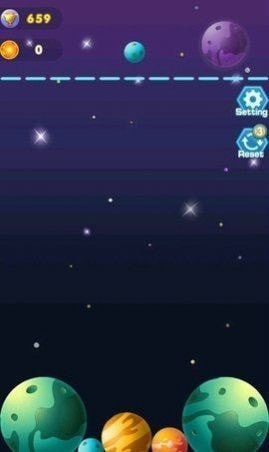 1、超级简单的游戏玩法,只是不断合并行星并将行星放入太阳系的轨道中赚取金币