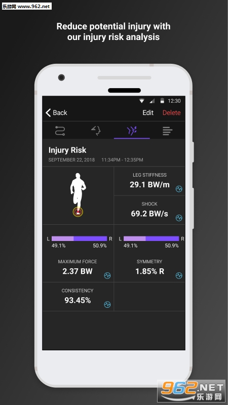 分析并检测您的受伤风险(冲击力,力量,腿部劲度,对称性,一致性)