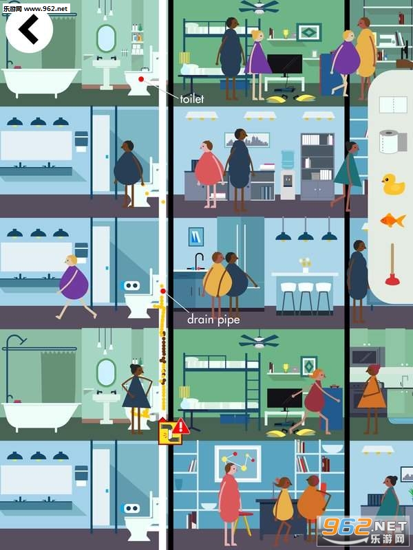 + 让人群在整个建筑中移动:上下电梯、通过浴室、进出房间。